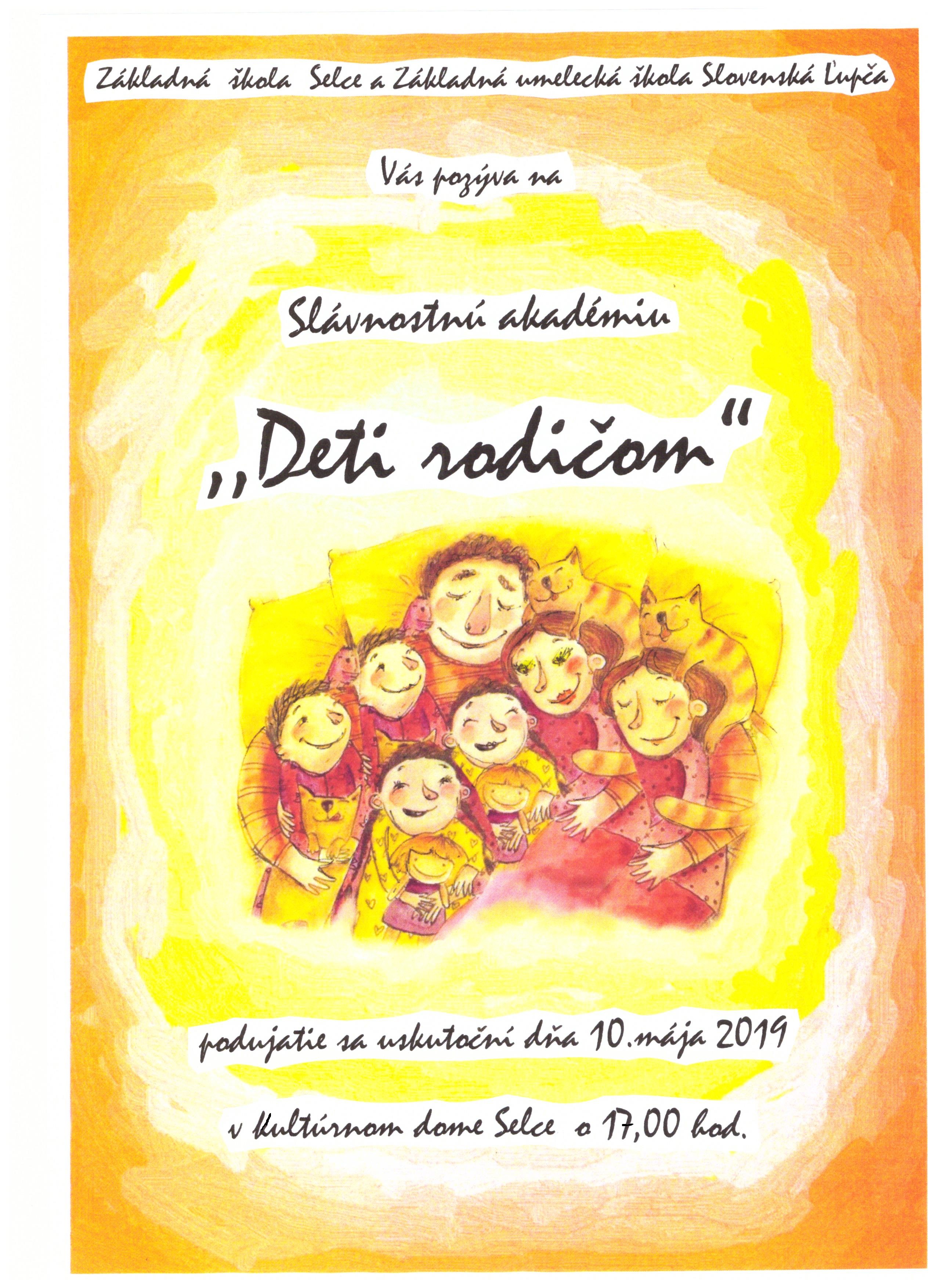 V piatok 10. mája o 17. hodine Vás deti ZŠ Selce a ZUŠ Slovenská Ľupča pozývajú do Kultúrneho domu v Selciach na slávnostnú akadémiu.